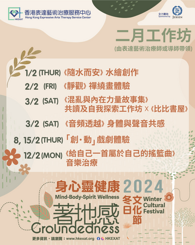 This winter, the "Mind-Body-Spirit Wellness Winter Cultural Festival" will be themed "Groundedness", connecting the mind, body and spirit through arts and creativity, listening to the inner self and walking with the heart. We believe that arts can lead us to stabilize ourselves in the present moment and build a safe and quiet place that belongs to you in the midst of a world full of chaos and war.